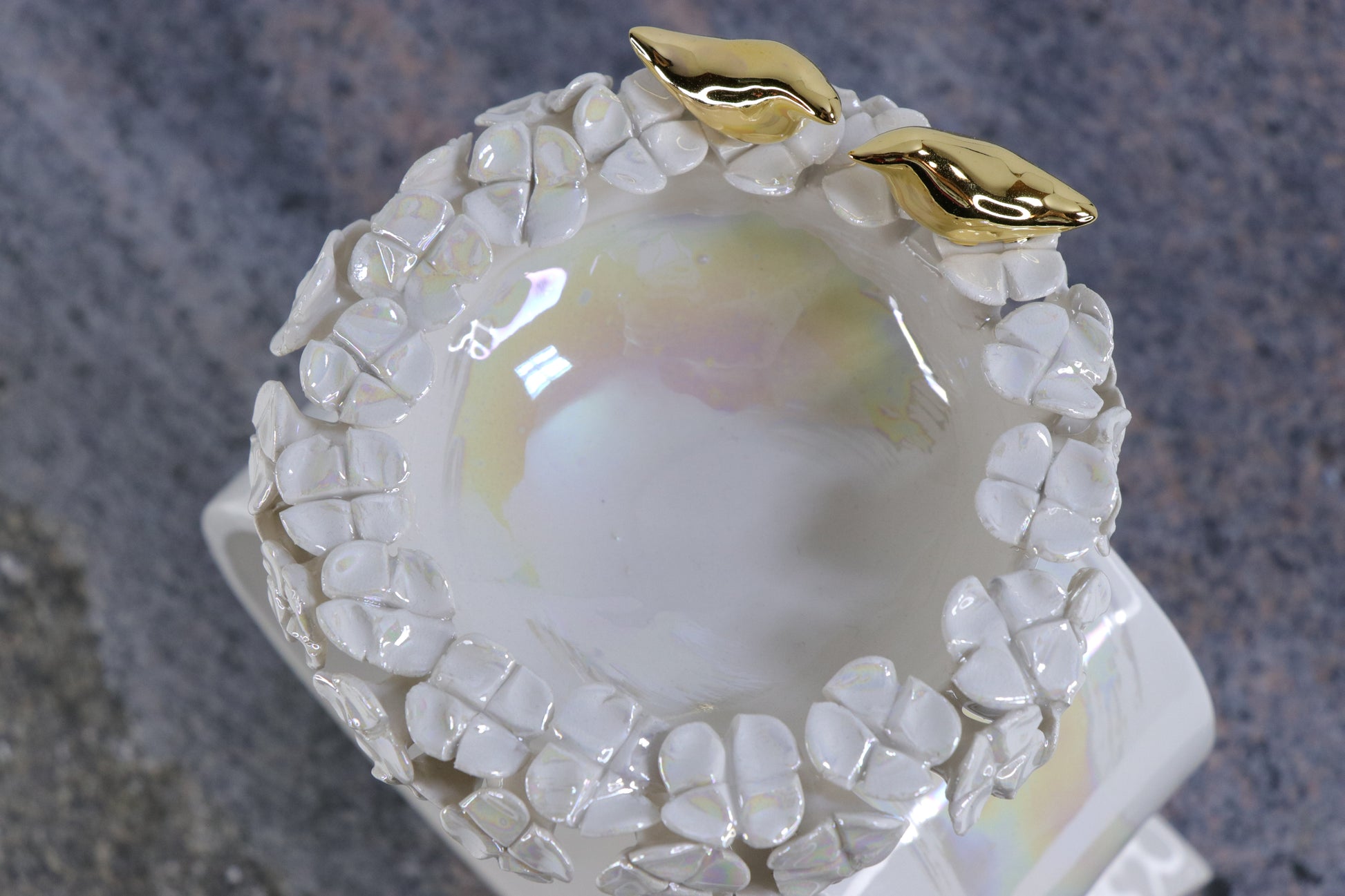 Ceramics are covered with white glaze.